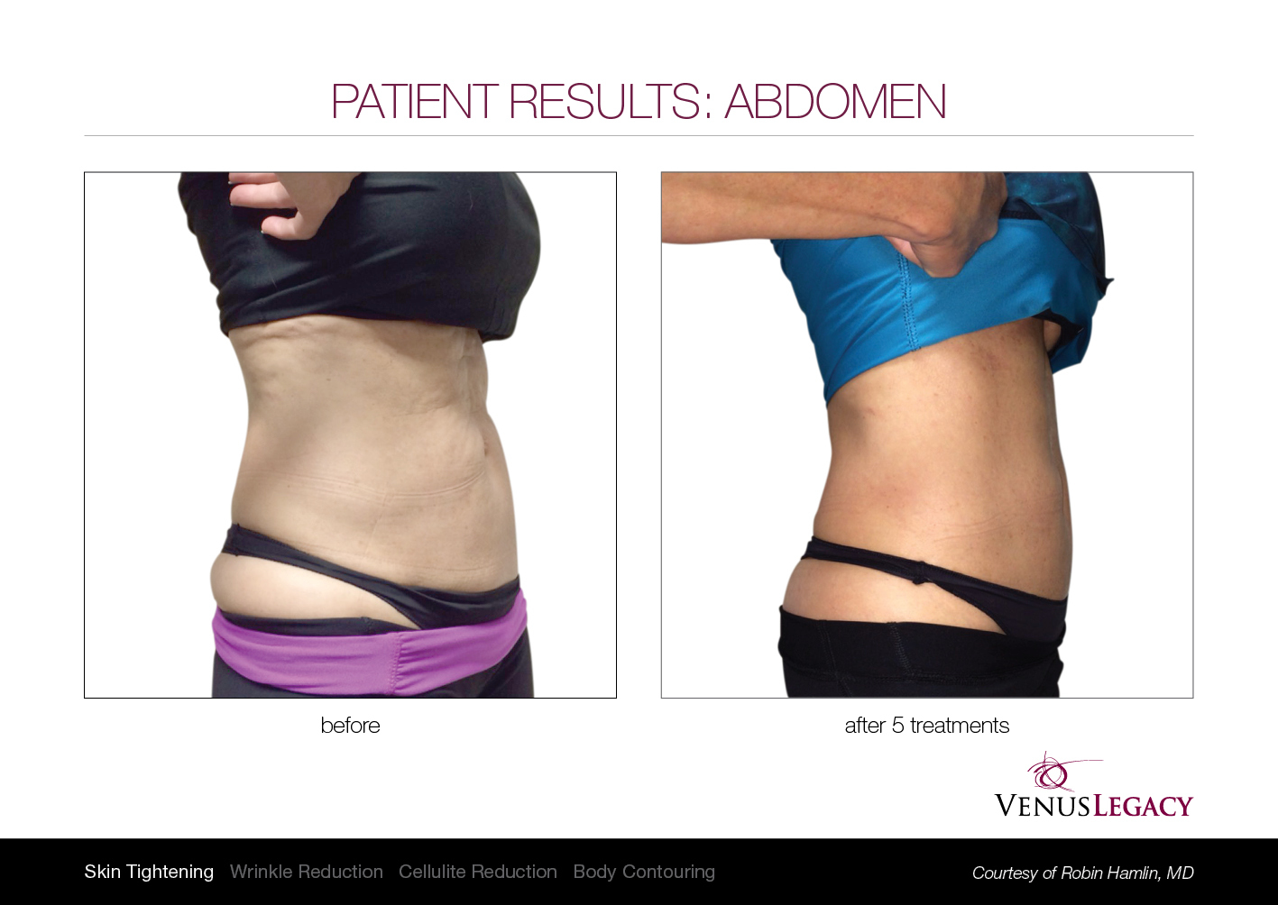 • Venus Legacy is a non-invasive treatment with no downtime and no pain. Patients compare treatment to a hot stone massage.