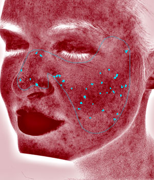 Determines the patient’s overall skin condition and age. UV photography provides the most complete data set available for sun damage assessment and analysis. Canfield’s RBX® Technology separates the unique color signatures of Red and Brown skin components for unequaled visualization of conditions that result in color concentration, such as spider veins, hyperpigmentation, inflammation and other conditions.